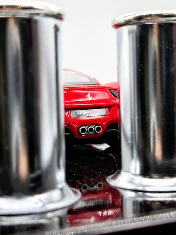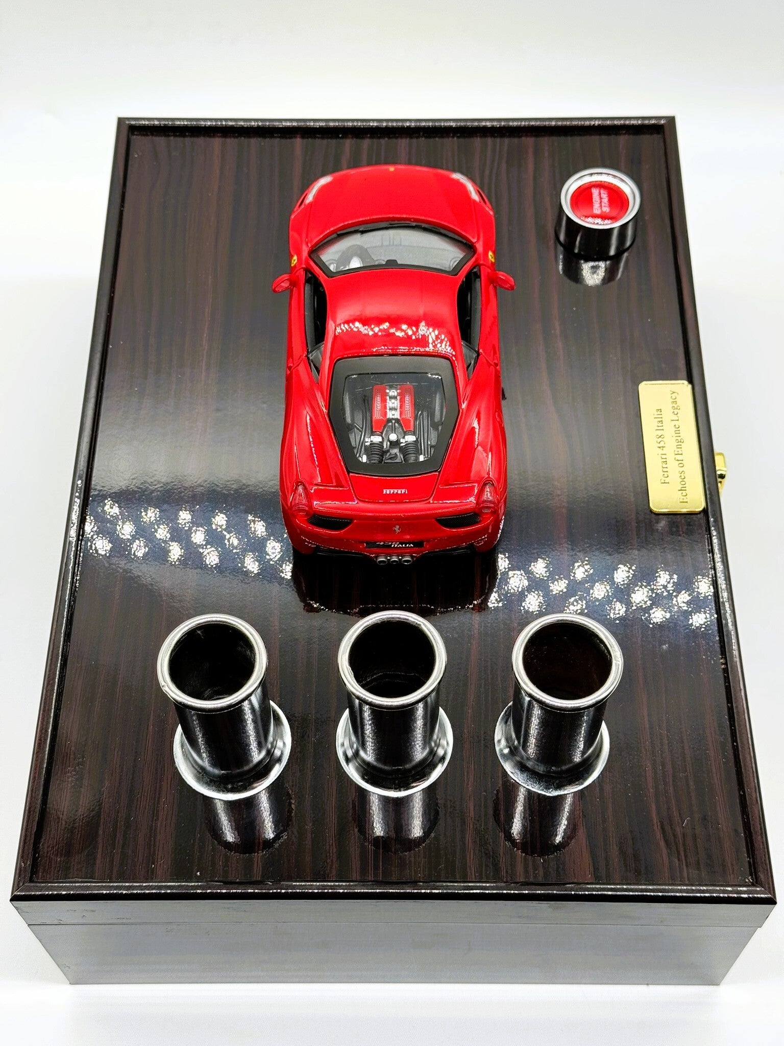 Bring the sound and soul of the legendary Ferrari 458 Italia into your home with this beautifully handcrafted display stand, part of the exclusive Echoes of Engine Legacy collection.